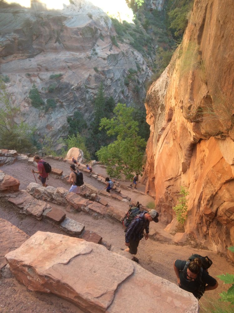 We got up at 6am and had an awesome breakfast at the hotel. It was a simple continental but they had everything! Went straight to the park and headed up Angels Landing. Trail traffic was heavy and even though we were early there were already people coming down. We made it through the first set of chains to the saddle and took in the view. We decided if we continued to the top we probably wouldnt be able to do the narrows like we wanted so we snapped some pics and headed back down.