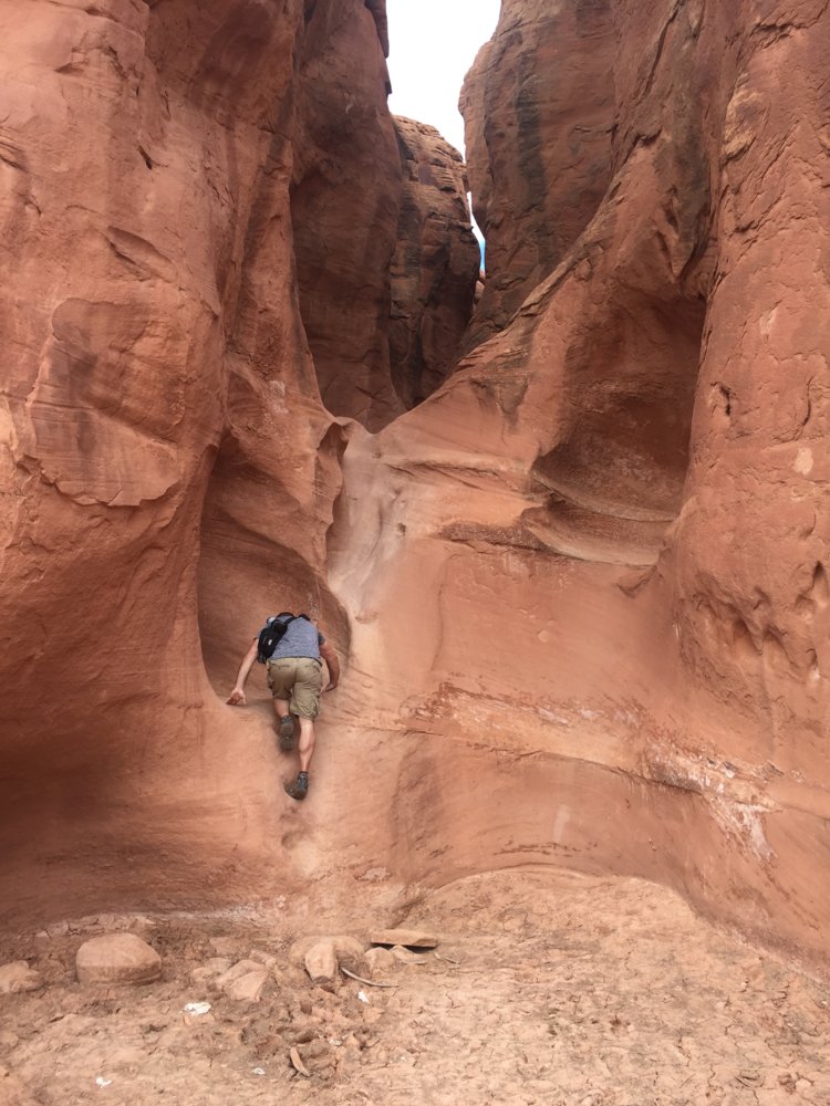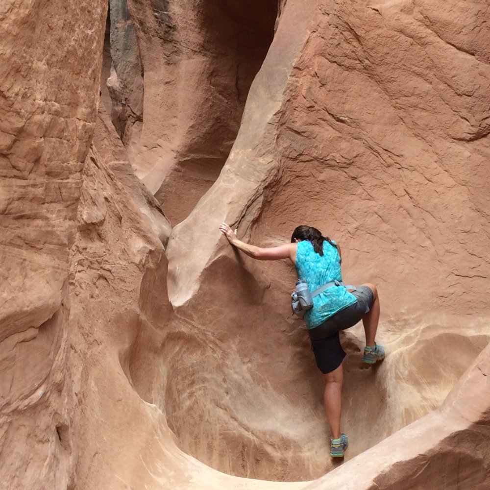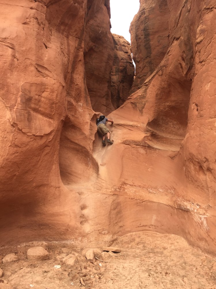 We left Bryce after the quick hike and headed to Escalante. We got checked into our cabin, dropped the trailer and headed 26mi down the dirt Hole in the rock Rd to hike Peakaboo gulch, a slot canyon. The trail was only marked by rock cairns, this wasn't an issue until we excited the end and had to make our way back lol. Getting up into the canyon proved fairly difficult but was all fun from there.