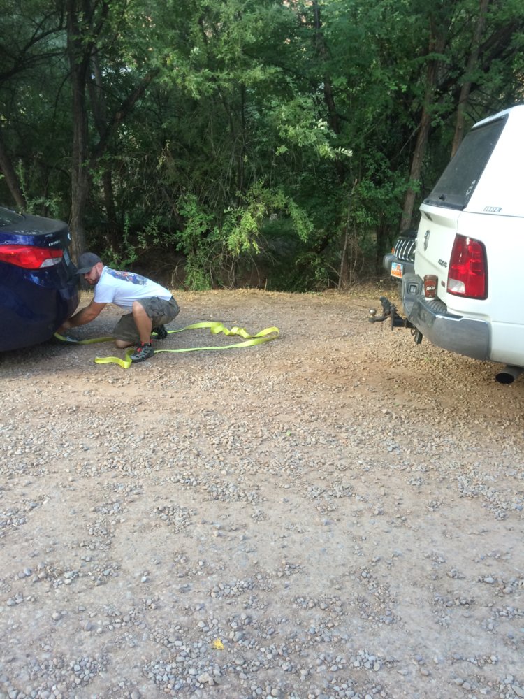 We made it 900 miles before we had a blowout on the trailer in AR. Melissa was driving and quickly got it off the rd. We had a block ready to drive up on and a 1/2" impact. In less than 20min from the time it blew we were rolling again. This was our 4th time towing out west, we weren't going to let a trailer flat slow us down.