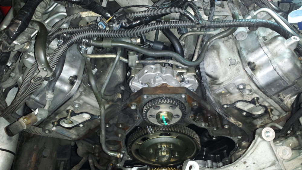 There were two cracks in the timing cover from when I wrecked it. They were exactly where I thought they'd be and I feel much better knowing that I was right, but more so because I didn't do all that work for nothing! Having the timing cover off also allowed me to pull the CP3 gear off before removing the pump itself. That let me remove the pump without having to take the Y bridge out.