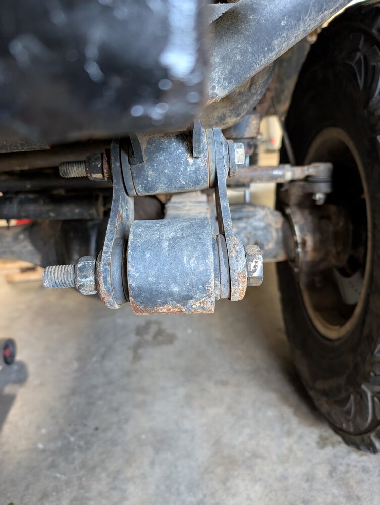 Saw this type of pump on sale for 40 at lowesSince a job is not complete until you do it 3 times, I changed the front shackles out, a project I have been meaning to do for almost 2yrs now lol. So when I pushed the front axle forward a few winters back, I grabbed the wrong bushing tube holder thing for the shackle hangar, it was a 2" and I should have used a 2.5 to match the springs, well I found this out when I went to bolt the shackles on. Like any good Toyota owner, I said f it and just ran the shackles for "only one wheeling trip" like this /\. Well today I finally fixed that with some 2" to 2.5 shackles from Barnes lol.