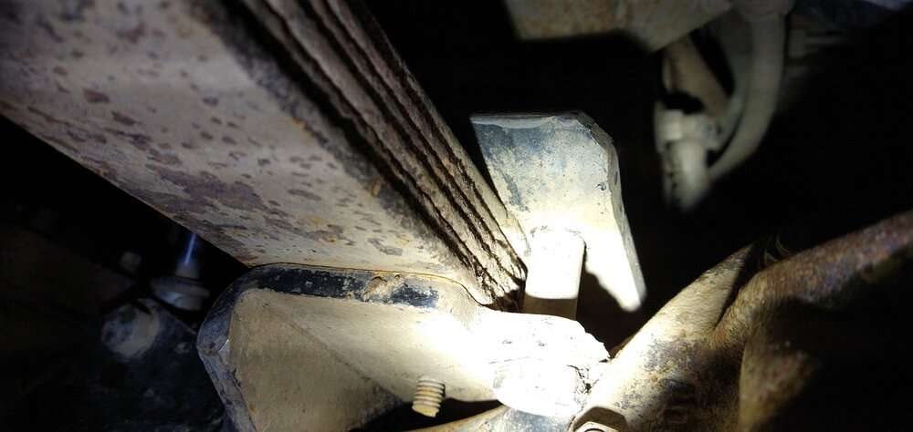 Doing a brake job and found a caliper that was fucked so after ordering parts I was laying under the truck and was wondering why my leafs weren't straight on the front driver side. I was banging away on the bottom leafs and noticed my main leaf was u shaped. Well fawk the damn main leaf cracked, I don't know if it was that last Harlan trip, windrock before it, or both. The shitty part is my dumb ass used some of the hardest springs to find stock, the damn fj62 rear springs. There has to be a jeep spring or something out there close...