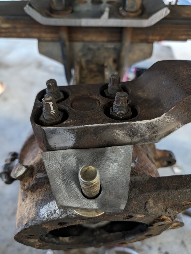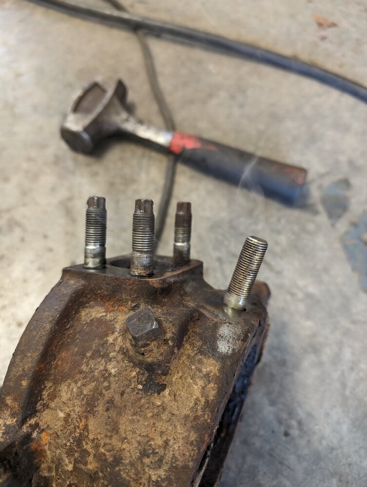 Other side was fighting me HARD. So I was pounding on the steering arm FOREVER to get it off. In the process I bent two of the holes where the studs attach, so that had to be addressed. Pic omitted, ask to see if if you see me.on the trail and make fun of me in the moment.