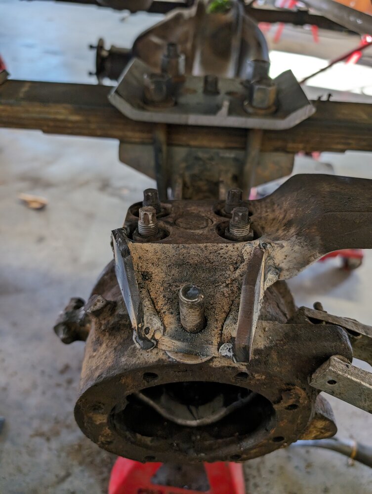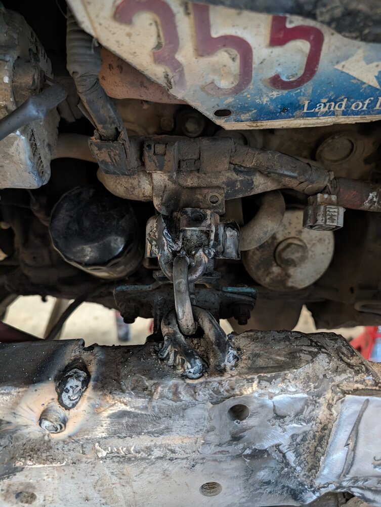 So two of my knuckle studs are bent, I don't know if they were bent from wheeling or frome beating the ever holy hell out of the knuckle, so that kind of stalled out that part of the project, I'll order up.some new ones and swap them in for piece of mind Still in decent spirits. So I decided I'm done with these damn knuckles and here is a good spot of work on something else. Look at the motor mount, I'll chain that mofo.