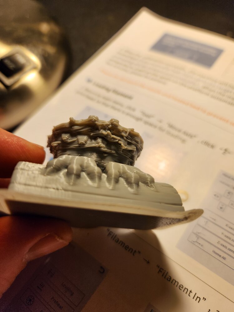 yep. I printed the above part and everything went really well. After a brief switch to TPU I went back to it and had all kinds of problems with globs and adhesion in the first layers. Finally gave up and switched to PLA+, during the switchout I realized the nozzle was ever slightly clogged.