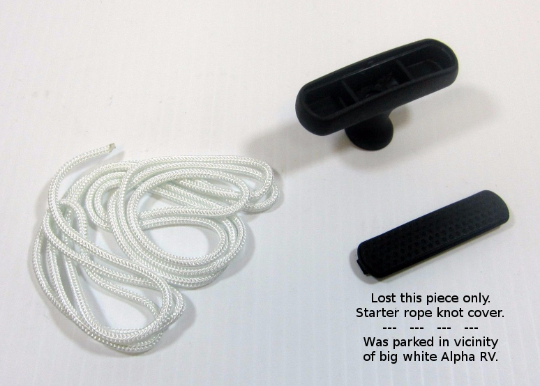 I will be up that way tomorrow. I will look for it.If anyone happens to be back up around that area. I lost a small piece off my Honda generator. Thus far this week, I have not had time to go back up that way. Honda has 'em, but wants twice the cost to ship 'em. Thought I might try my luck this way first. ThanX!!