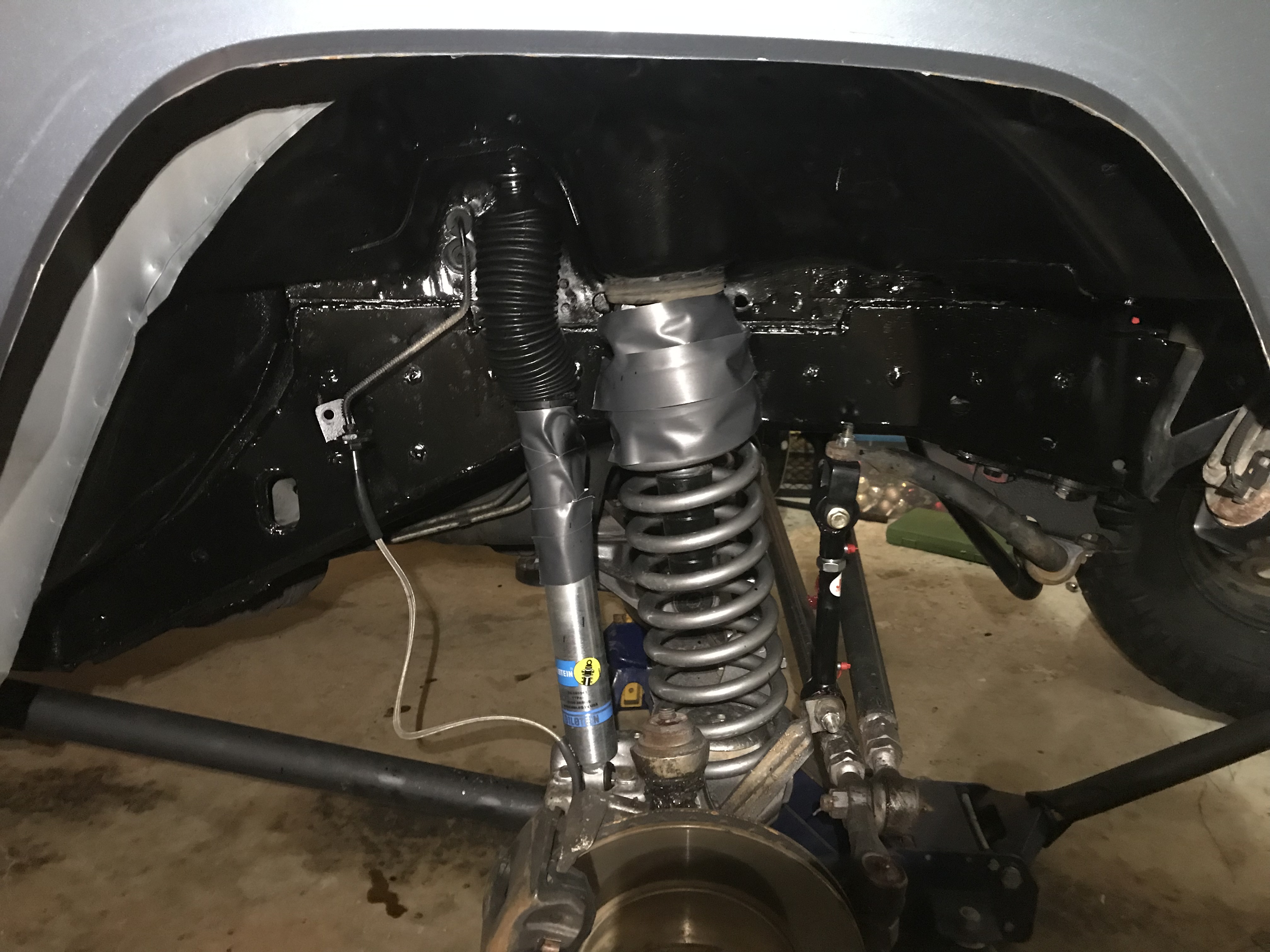Not a whole lot to report on. Got the the relocation brackets and disconnects installed. Painted inside the front fender wells and stiffeners...it came out pretty good. Not much left, sold off my bumpers and have some new ones being made, pretty stoked for them. Looking to make a day trip somewhere to see how she does. Anyone down or have some recommendations?