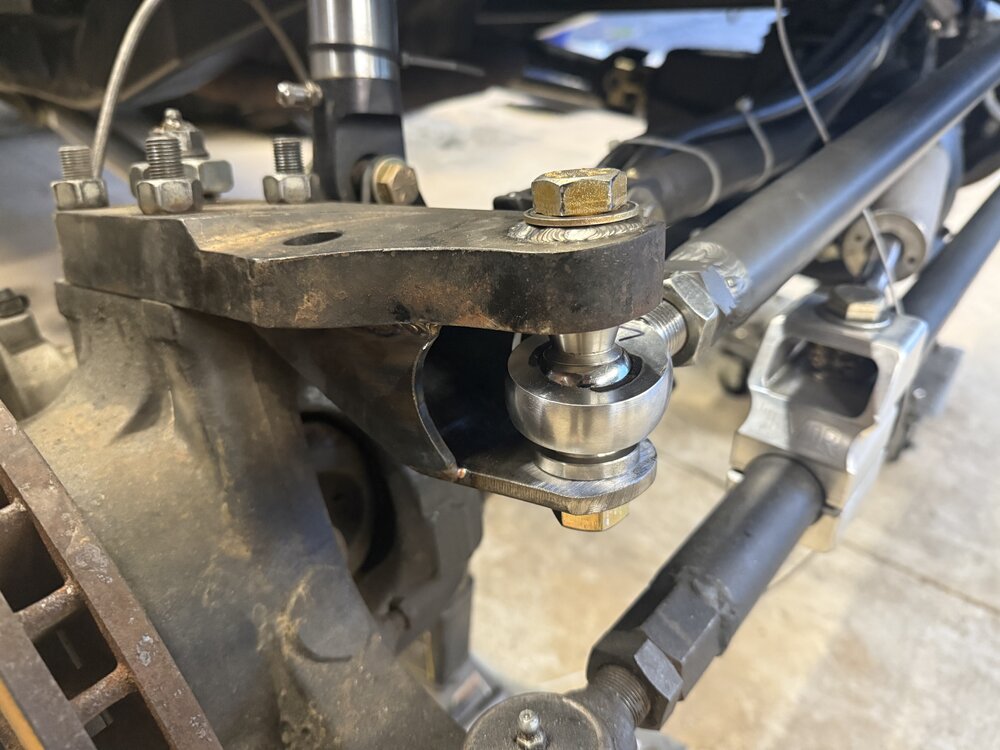 I had a buddy with a machine shop spin me up a couple of reducer bushings for the high steer arm to swap it from the tie rod taper to the 5/8” bolt I’m using now. Got that welded in the passenger arm and then made the double shear bracket for it. It’s probably overkill but now I shouldn’t have to worry about it. A little paint and it’ll be finished up.