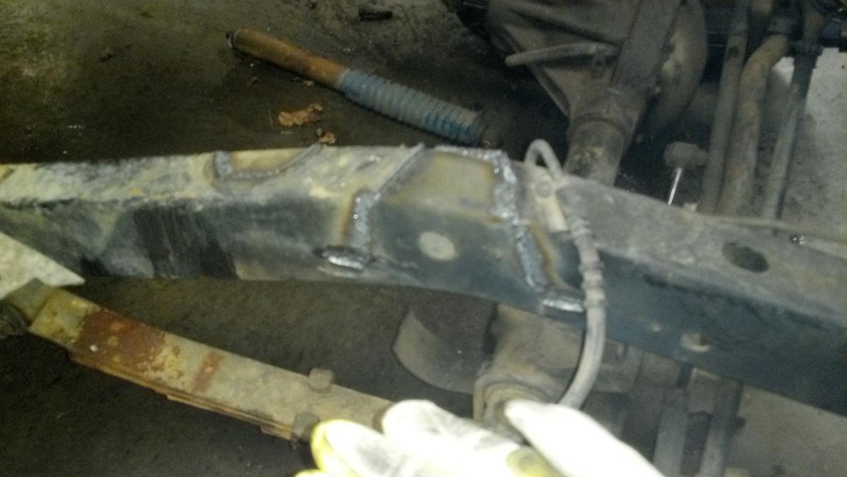 Me and the goof troop got a little done tonight... Got the rear in swaped to spring over with the 14bolt and the 39" stickies. We also got the tcase mounted up to the transfer case. Took a few hours to clean all the mounts off the 14 bolt.