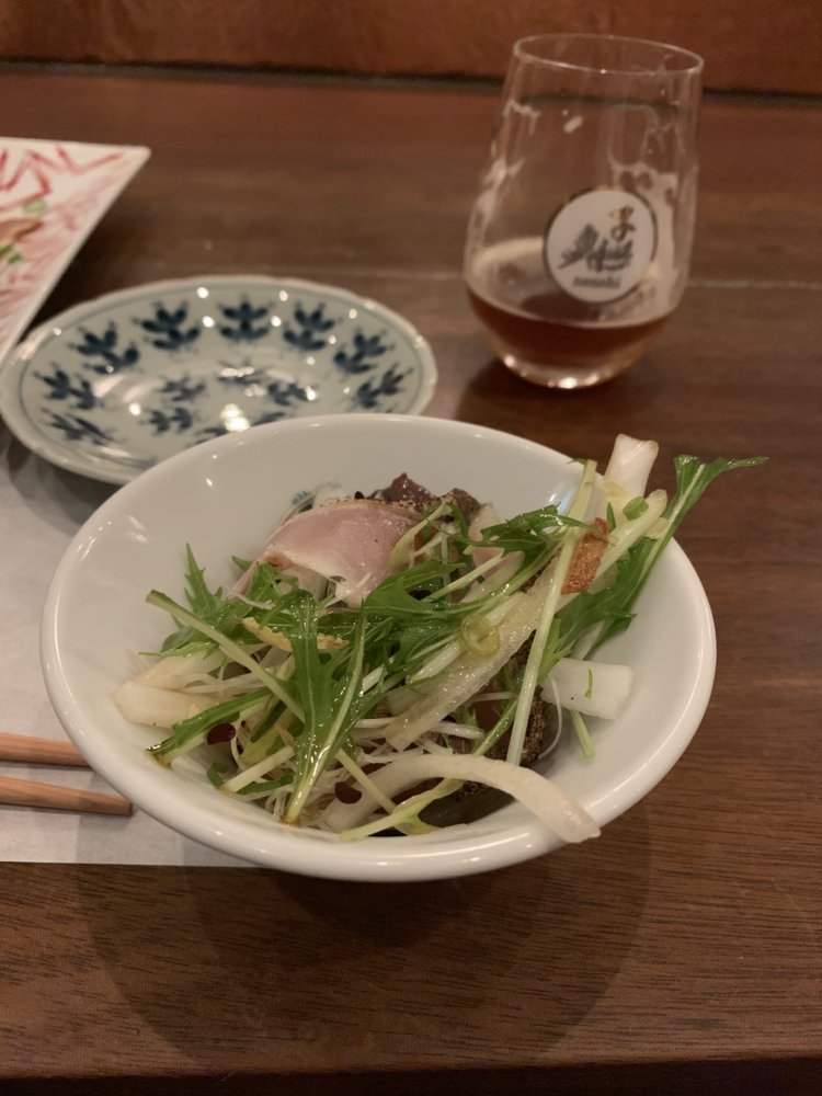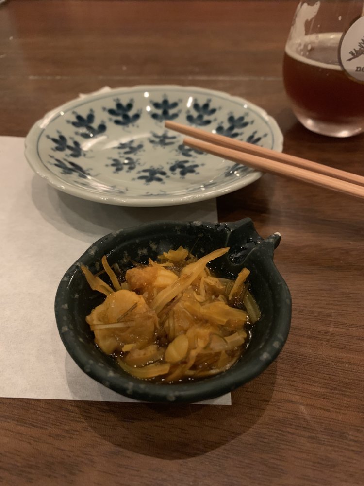 Started with ‘Japanese pickles’ which I was told is squid, fish eggs, seaweed, and ?? In a ginger vinaigrette kind of sauce.