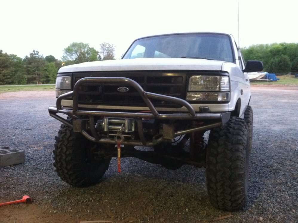 Never built a plate style bumper for an OBS Ford but I built this a few months ago for a member on here. I could do one like this out of tube and would only need the truck for a day. Should be able to do it turn key minus paint in a good days work.... This one houses a 12 or 15 (cant remember which) thousand pound Warn winch. Are you planning to run a winch in it? A plate bumper would get pretty pricey and take much longer.