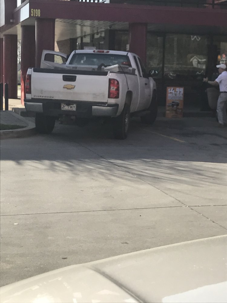 Had even more stickers on the front windshield, pulling a real Ricky Bobby. Also more tire sticking out than under the fender, no lift made it look lowered. 2 cb antennas