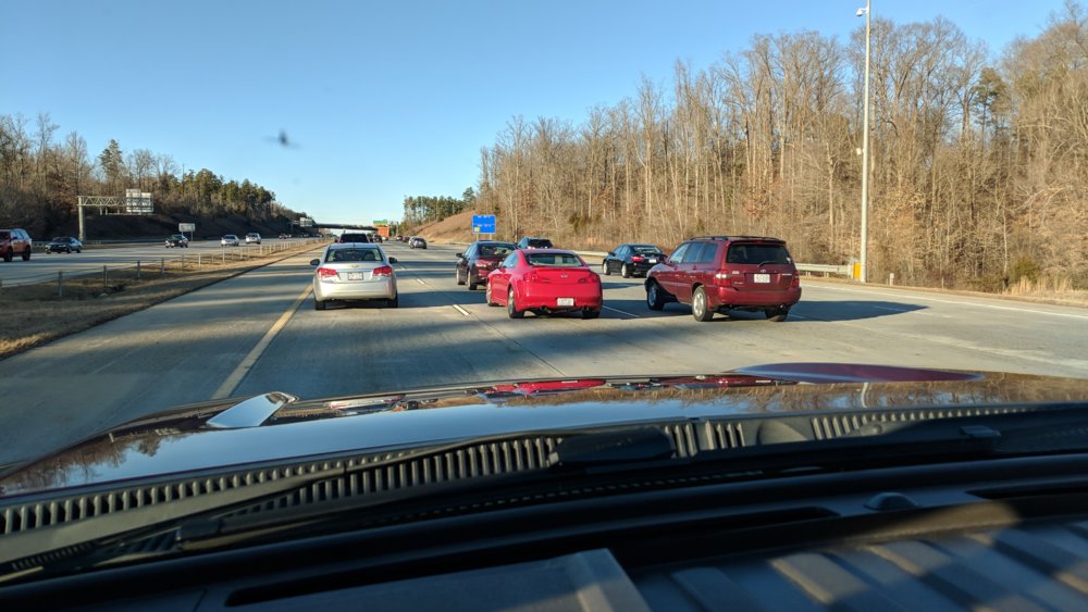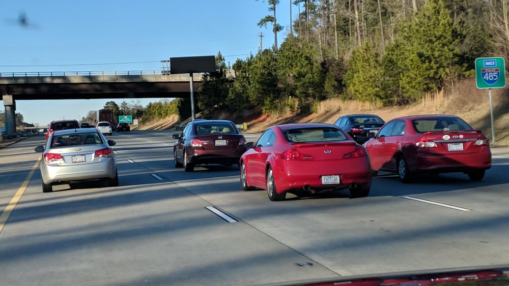 Duh....draftingRed car was less than 5ft off the car in front of him, at 80mph, for at least a mile.