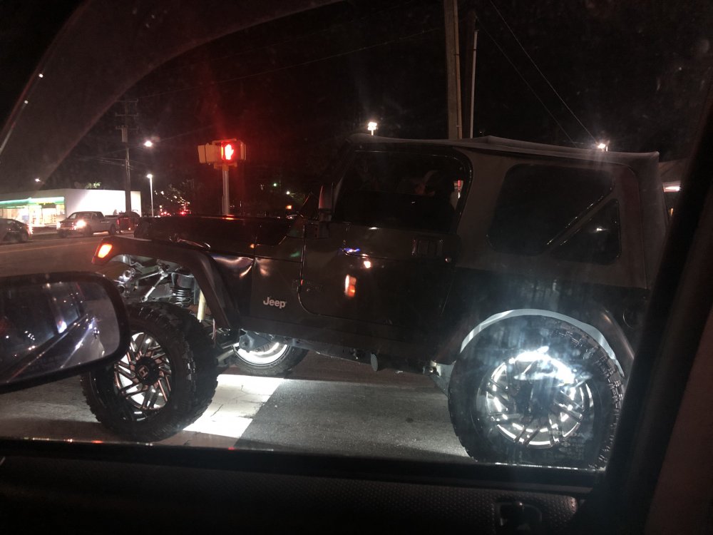 Not sure if its been posted before, but I threw up a little when I saw this TJ on the way home the other night. He even has the front driveshaft disconnected to accommodate his squat.