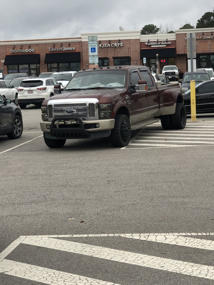 The passenger side of the dually looked like it was going to hit the post.