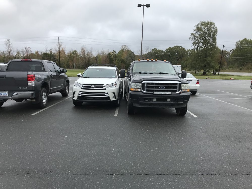 Yeah, its also easy to not be a dick and prevent someone from getting in their car for no reason. There's plenty of parking spaces, even a pull-thru spot 2 over. Did this really stick it to em? I strongly doubt it's a douchenozzle driving a white highlander. Probably somebody's elderly mom who can't judge distance well enough, and was just leaving space because the Tundra was right on the line and there were plenty of open spots.