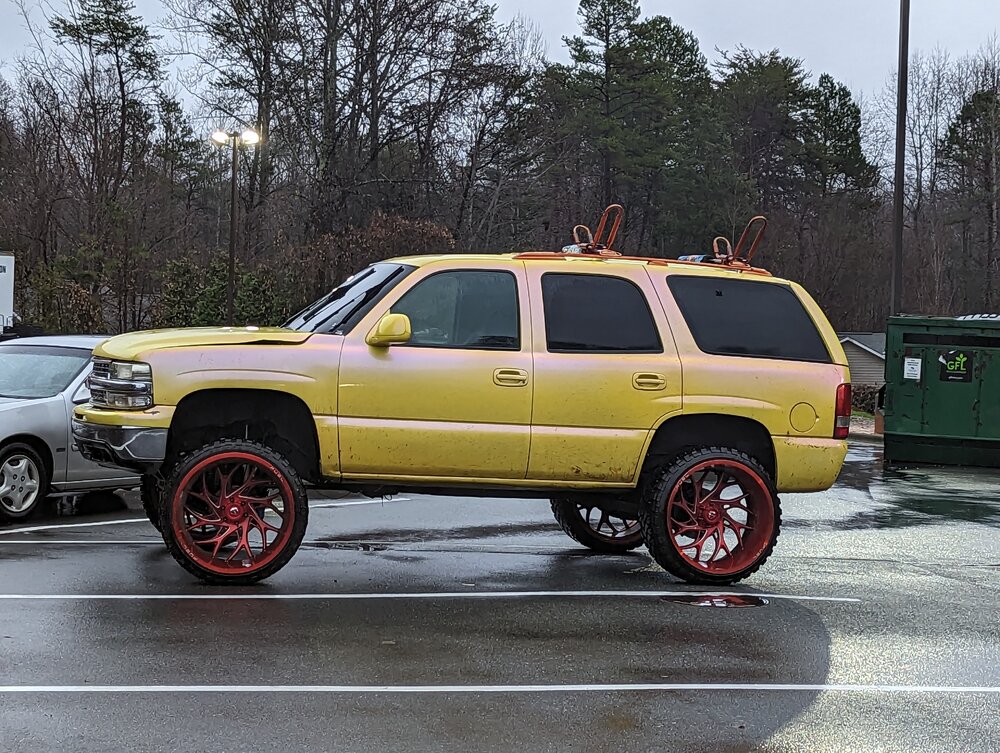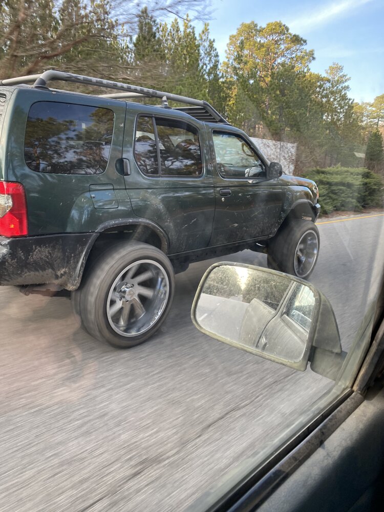 I saw that thing at the Food Lion off First Street last week. A female got out of it & left it running with the radio jacked up. Didn’t look like anyone was in the passenger seat but I couldn’t see through the rear windows.