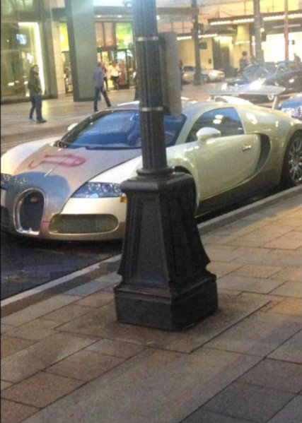 That Bugatti looks like in got vandalized in Berlin. I stayed at the Westin next to that walk way and storefront.