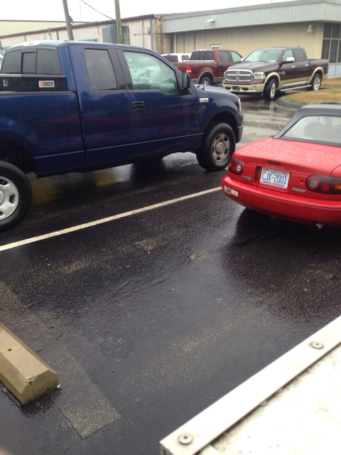 Of note is that EVERY other vehicle in the pic is truck. I guess every company has it's "Miata guy"...