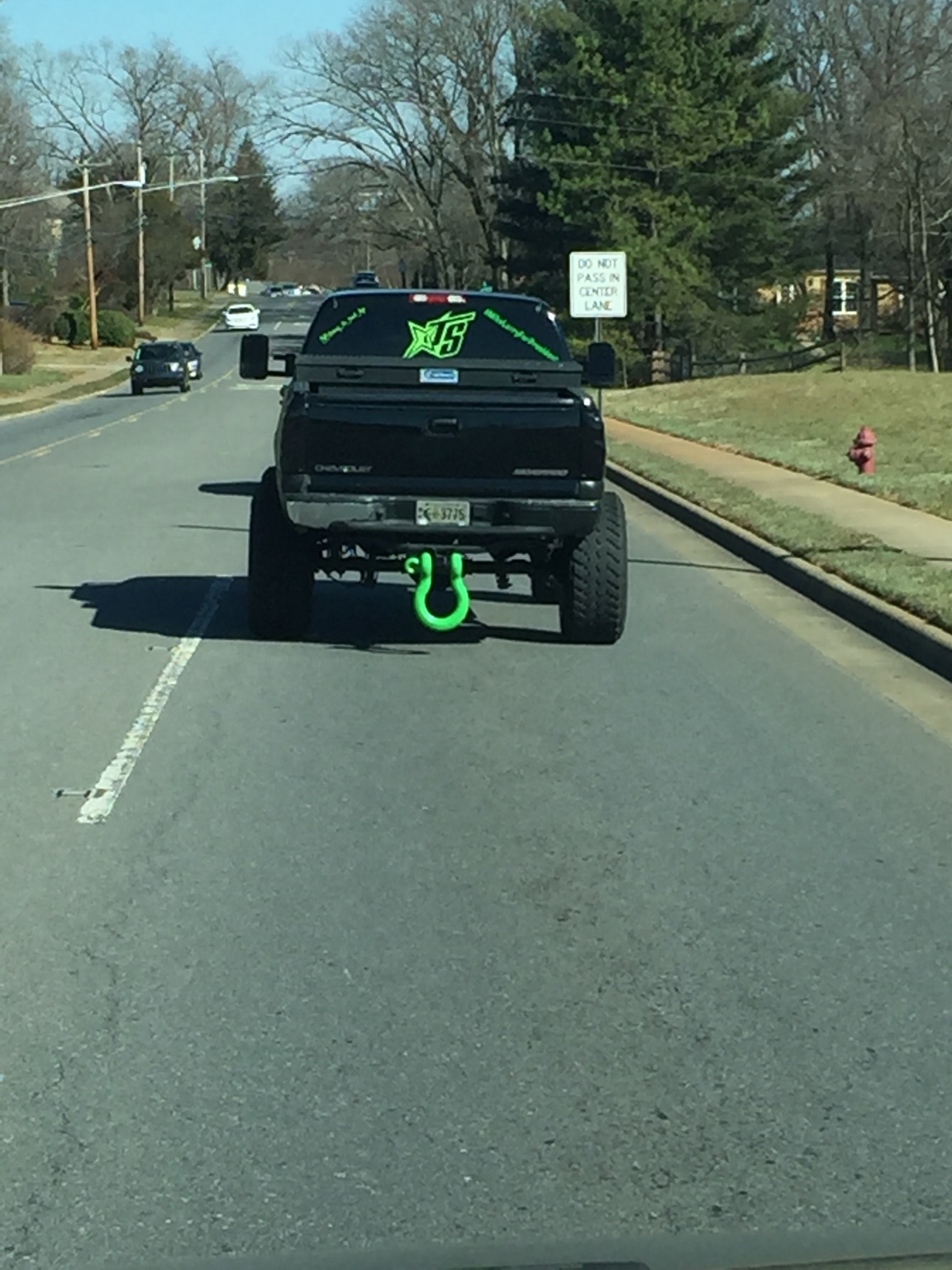 I had this one come through my shop. Had a 6" lift in the front and a 4.5" lift in the rear, 37s in the front and 34s in the rear, and some douchenozzle stickers in the rear window. He also lost it to repo from a 156% interest rate title loan of $800.