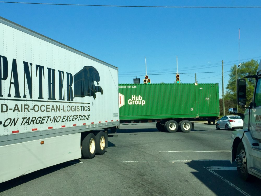 I snapped a pic of this rig a few months ago they were hammered on down 85SB stacks on stacks