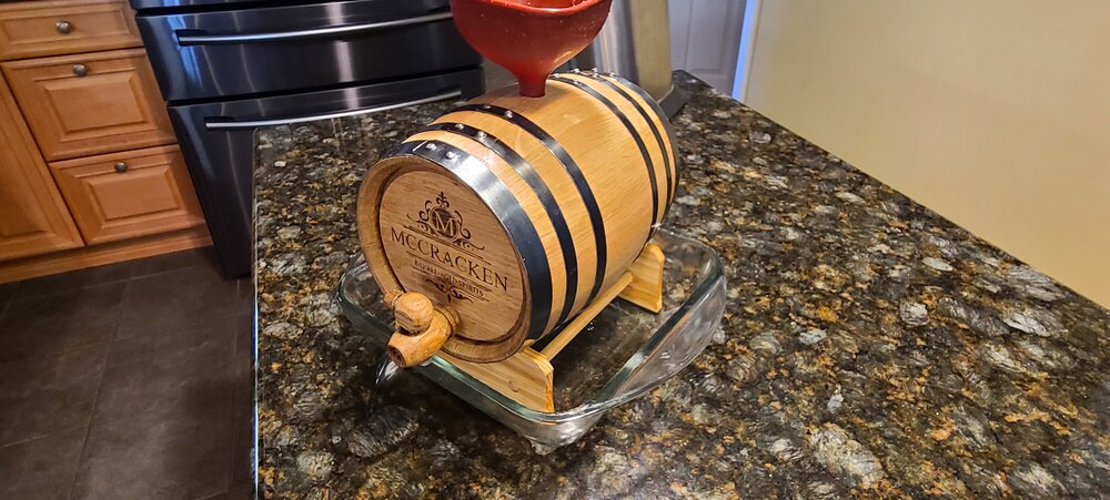 The Mrs got it for me for Father's Day last year. You can put bourbon in it and age it out further if you want. I use it on the less desirables.