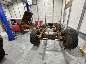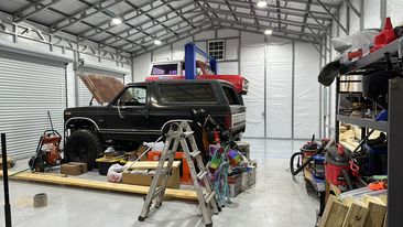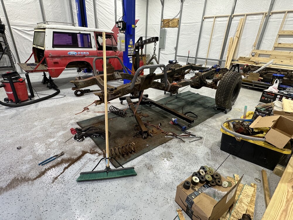 Since we decided not to take our 86 to any serious wheeling we decided to pick up one of @NC-Fordguy 's broncos. This is a 1970 Bronco that I had worked on with him before he passed. We picked up a 77 dana 44 with disc brakes to go with it and an NP435/NP203/Dana 20 combo to go behind the 302. It ran before being taken apart by Ed and the engine has been wrapped up this entire time so i'm hoping that running some oil through it to clean it out of any potential dust and sealing it back up will be enough to have a halfway decent running setup. We replaced the floorpans and rockers in it and we were in the process of replacing the heater box supports (not certain what the real name of these is but they extend from the cab towards the front and the air box attaches to one side). It got a fresh 1" Body lift and a new fuel tank before Ed's last wreck and he was in no shape to continue. Plans as of right now are to strip it down to the frame and clean up the rust we weren't able to get to and that it has gained in the past few years of sitting outside. New brake lines and proportioning valve to go with the disc brake front end. Hoping to refresh the lift. Planning 3.5" Suspension to match the 1" Body lift and run 35" Tires. The wiring harness is questionable after 50 years, so I am planning to install a universal painless harness. While i've been stressed on my 1986 about getting it right. My main goal with this is to get it on the trails. It doesn't need to be perfect, just looking for safety (No wire fires, questionable brakes or fuel, no rust issues, etc.). Going to be alot of work, but nothing I haven't done before. And the new shop and lift will help make some of it much easier. Ordered a set of Corbeau Baja RS seats and brackets for black friday and got a Prime Weld 225 to learn TIG on. I'll have it for Stick welding in the meantime. Nothing pretty but plenty strong. My goal is Veterans day next year to be wheeling, but I'd love to be there sooner. Just trying to be realistic. I'll still be positing updates on the other thread as I work on it, but this will get a majority of my attention in the near future. I've missed wheeling too much. In the meantime, i've finished up the floors in the shop and installed my loft. Still some work on that front but it's in a place where I can start working on stuff once the floors cure. Threw some pictures below of everything.