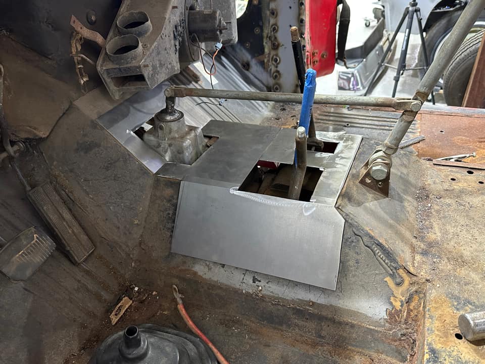 Been working on the bronco a little this week. Fabbed up a new removable transmission cover. Still tinkering with it and may adjust it a little but looking good so far. Got the top of the engine put back together, fuel tank back in and plumbed the fuel system. Trying to figure out an affordable steering solution now. I plan to do P/S in the future but don't have the extra money laying around so I am working on how to get the manual steering back together for at least 1 or 2 wheeling trips. I'm missing all of the bell linkage pieces for the steering shaft so i'm tossing around the idea of buying those pieces or buying a universal joint that will convert from the steering shaft to the spline of the steering box. Both will cost about the same by the time I buy the pieces I need (from what I can tell i'm missing, there could be more). Not sure which route I should go. Need to get the engine to TDC and drop the distributor in, finish replacing the last panel in the cab and then I can get started on wiring the truck. Slow but steady progress.