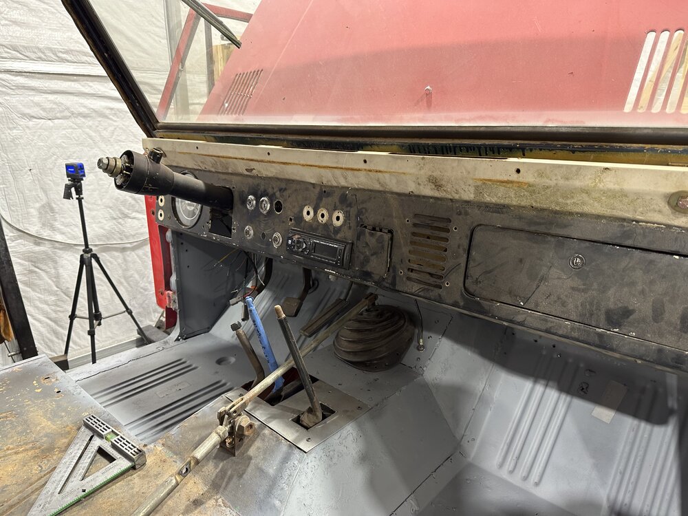 Tweaked the Vacuum, bumped up timing a few degrees and it feels pretty even now. Cranks right up. Found another leak on the oil pan I'll need to snug up but happy with where it's all at. Got the clutch rod adjusted for now, i'll probably need to tweak it a bit once it's driving but should work to begin with. Got the suspension all torqued down and some shocks installed. Still need to torque the steering and track bar. Been messing with a center console/shifter cover again just to have a place to put stuff when on the trails. I'm certain I'll end up redoing most of the shifters next year. They are just in odd places to do anything. up front. Getting close, just waiting on the wife to release some funds to finish the last bit, brakes/driveshafts. Hoping I can get it done and maybe do an early year shakedown run before veterans day which is the real finish by date.