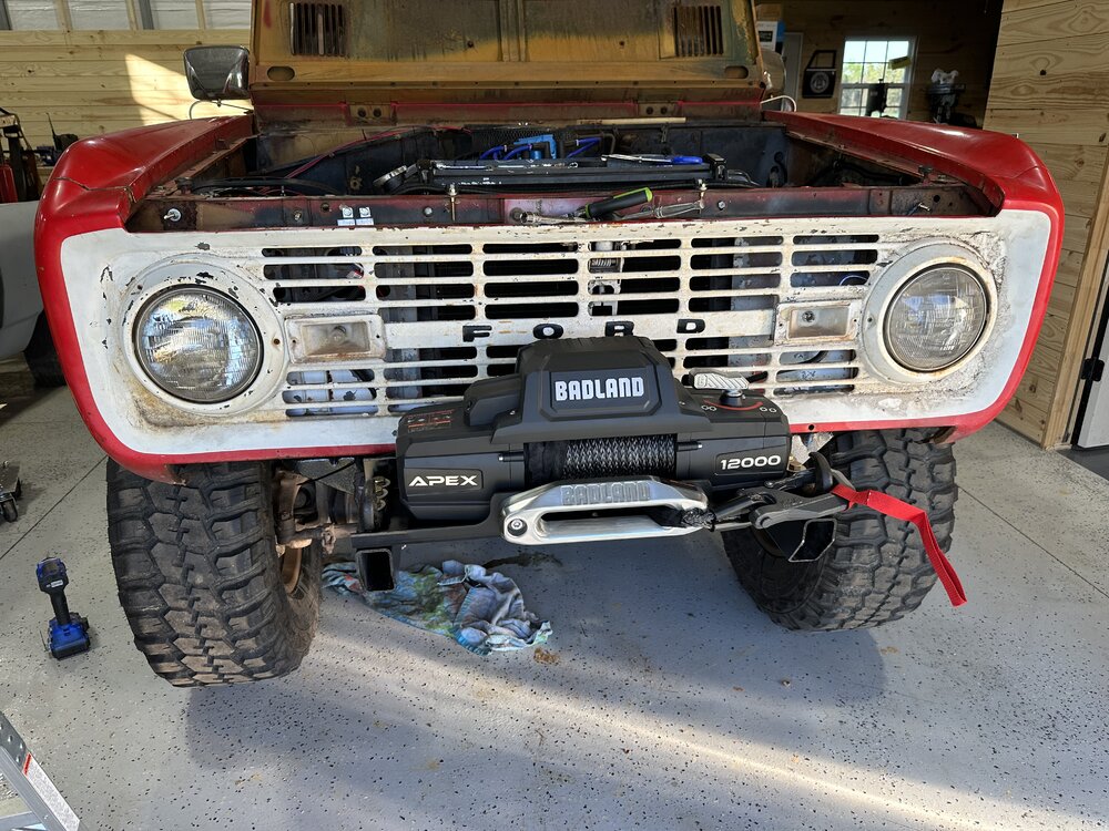 Picked up an Apex winch at HF on sale the other day so that I at least had some recovery options on the trails. Planning to do a shakedown run at the end of May for memorial day. Buttoned up the coolant leak I was fighting with on the thermostat housing. Got the clutch adjusted. The wife cleared me to spend some money on the brake parts/driveshafts/tow pig, so going to be a busy couple months throwing everything together. Brake booster and wheel cylinders are coming this week, Will give me a chance to pull the center section and replace the front diff cover, finally going to install the lube locker gaskets we got a few months back. I'll be ordering the lines and fittings this weekend to start working on running all of that next week. Then week after that I will be dropping the driveshafts off at the driveshaft shop to be shortened/repaired. All while working on the tow rigs brakes/tires/brake controller. Coming along though.