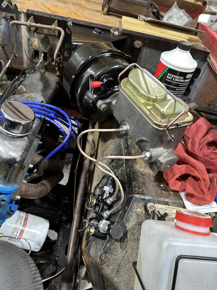 Getting close to the finish line on the Bronco. Got my power brake booster installed and all my brake lines flared and installed. Still working out the kinks and may need to reflare a few of the lines if they don't seat with an extra turn or 2. Driveshafts just got finished so I need to swing through and pick them up. Even with the leaks I should be able to pull the bronco out and putt around the yard with it, check the drivetrain out and see if there's anything that stands out as an issue right away.