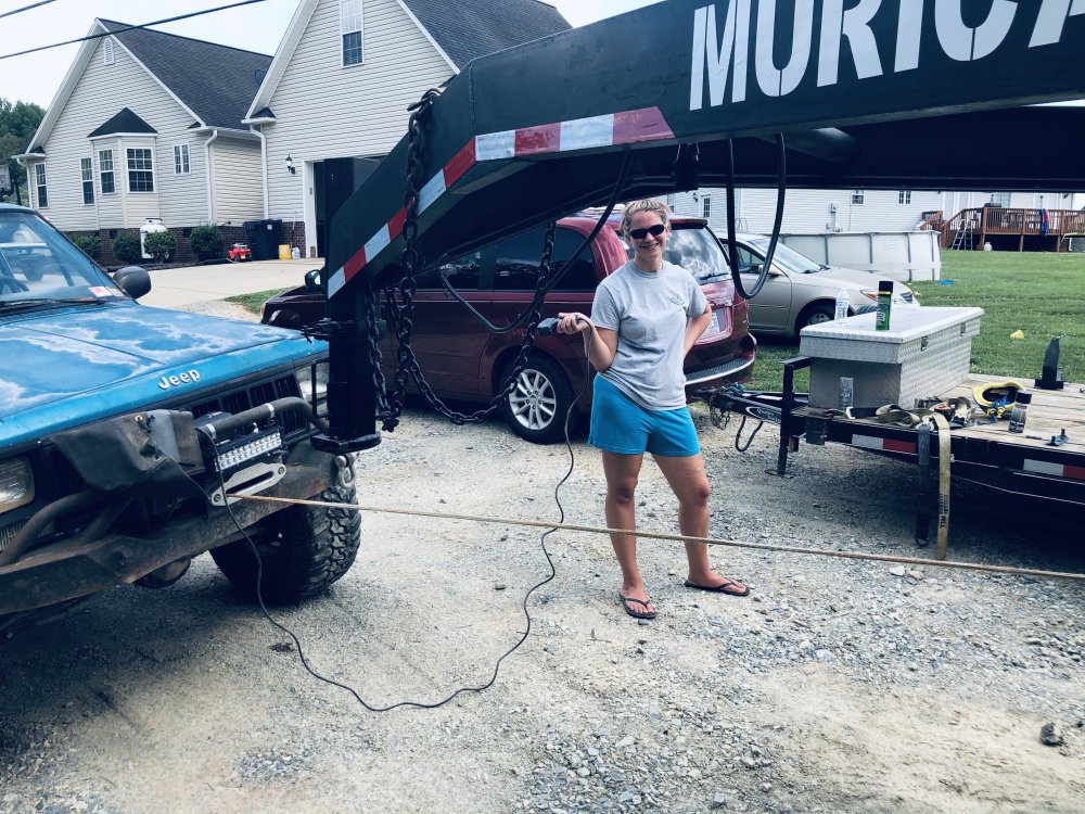 After I got it lowered I disconnected the truck and used the winch in the XJ to begin pulled it forward.