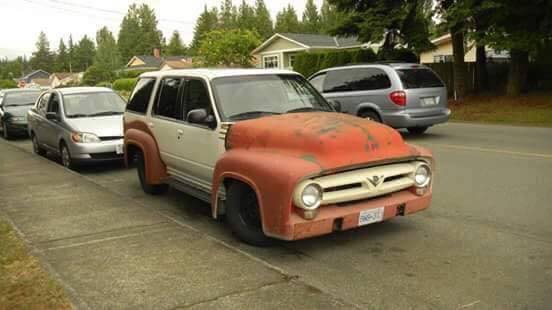 I would name it the Platypus, cause somethings just should never happen.Fords and Chevy's alike have been getting mugged of their grilles for transplants on later models vehicle. Be on the lookout for any suspicious vehicles with these distinctive front ends. If you see one, please call 1900-976-DOODOO
