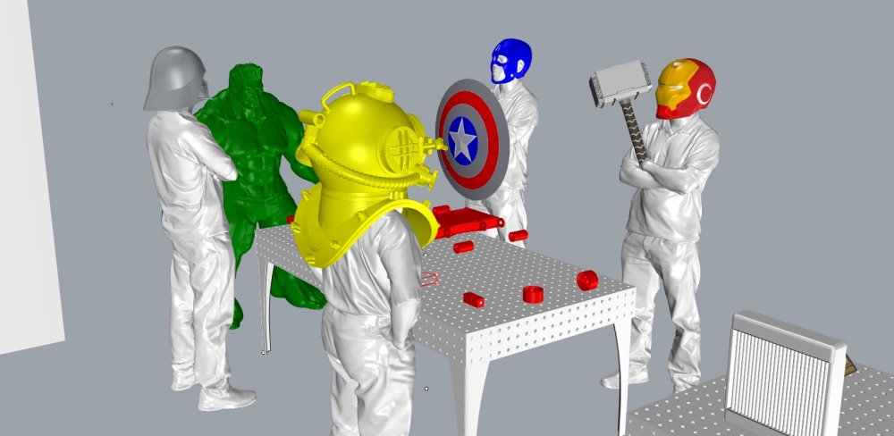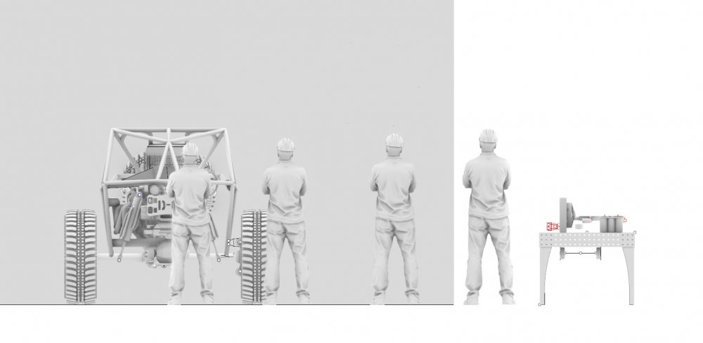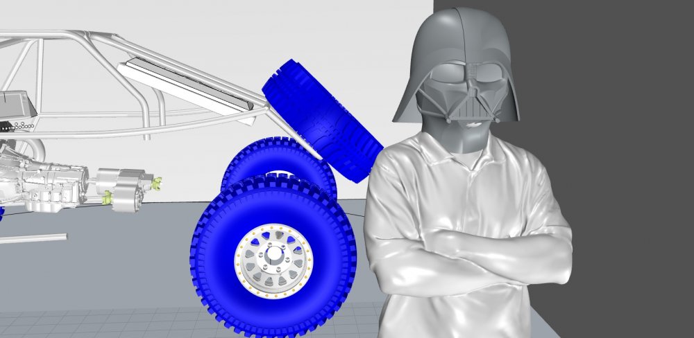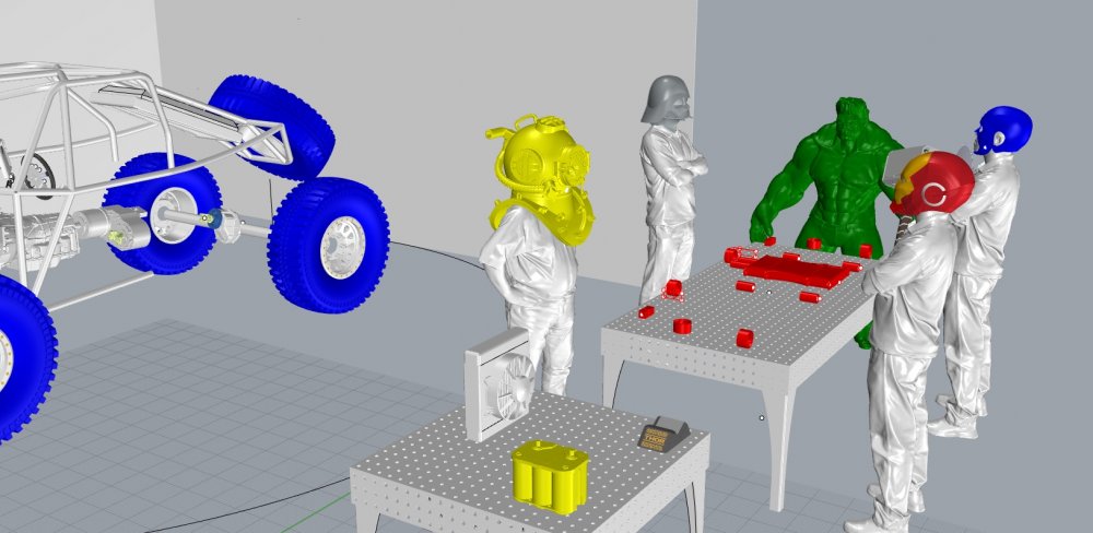 Can you make the short guy a little fatter and a little shorter with a cooler helmet? I want to be a part of this build!I was able to get two of the standard issue Moto-Bilt welding tables lined up in the shop towards the side of my rotating frame table to potentially build some fixtures for my control arms. I could move the tables 3 to 5 feet closer to the car because it rotates on a frame table bearing.