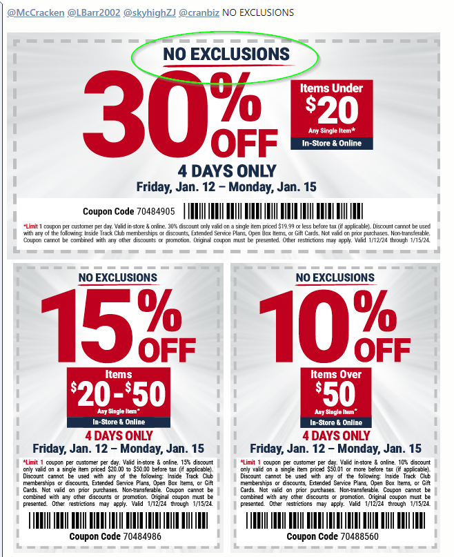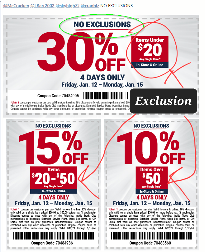 But it says "NO EXCLUSIONS" right on the coupon!Except price! I think I'm going to go pick up the band saw mount this weekend.