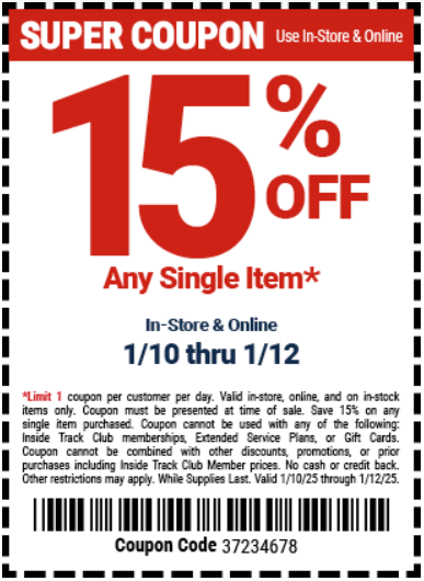15% off Harbor Freight. Get that cheap Chinese crap while you can before the tariffs make the price go up.