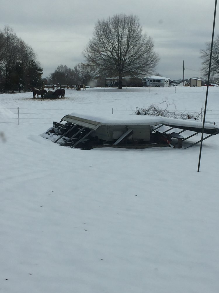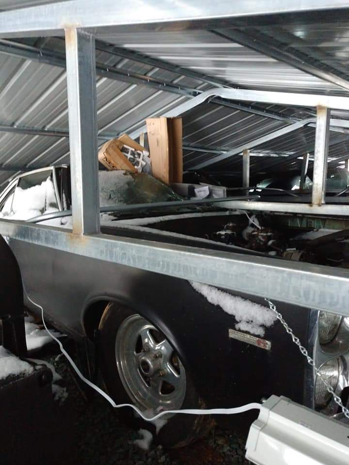 That's most likely the 15g stuff. They all collapsed. 99% of these manufacturers use 15g for the average carport/building unless specified otherwise. Even then you gotta double check. I know of one company that claims 14g but it's clearly not. Just be ware