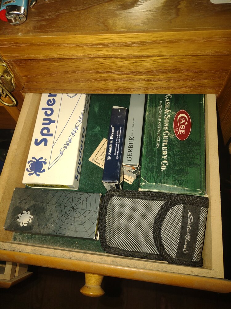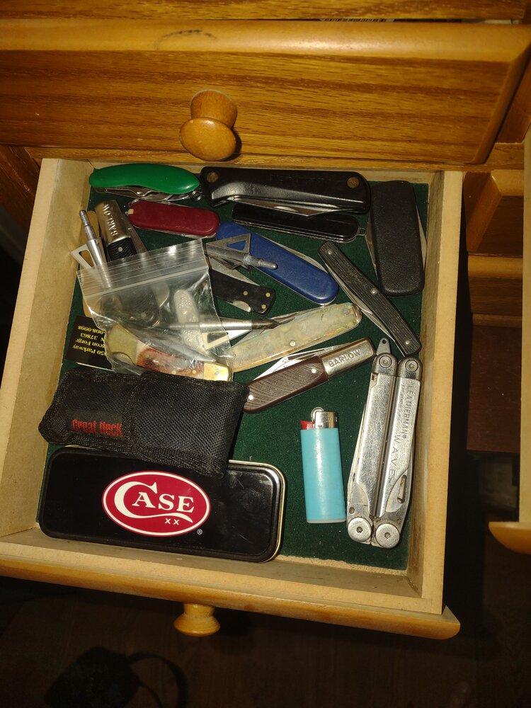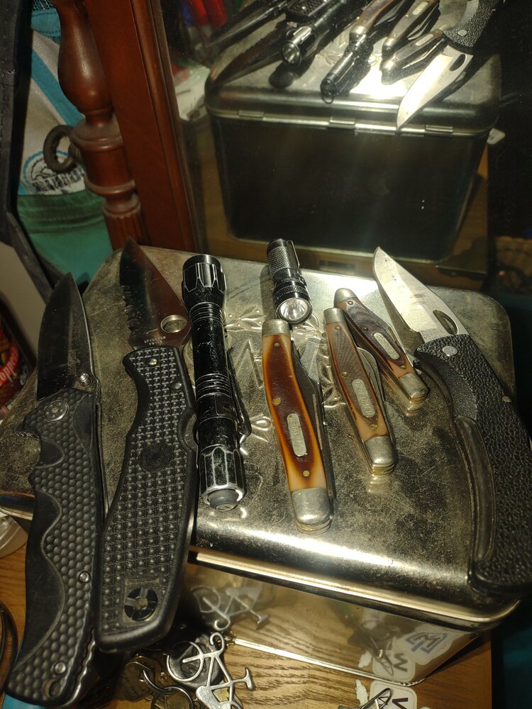 If I wear shorts (a rarity in itself) I do have a folding crkt m16 that I carry in a nylon mini mag flashlight pouch. I’ve found that saves wear and tear on both the knife clip and the pockets of my shorts. It also keeps the clip from poking holes in car seats and leather chairs.
