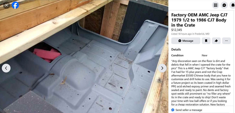 Packaging being particleboard makes me think it’s an omix Ada body from the Philippines. That 2x4 does not have 30 years of age on it either