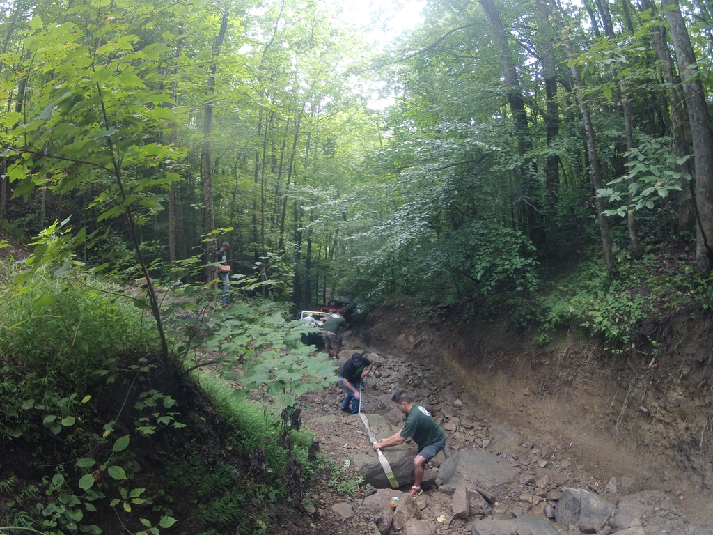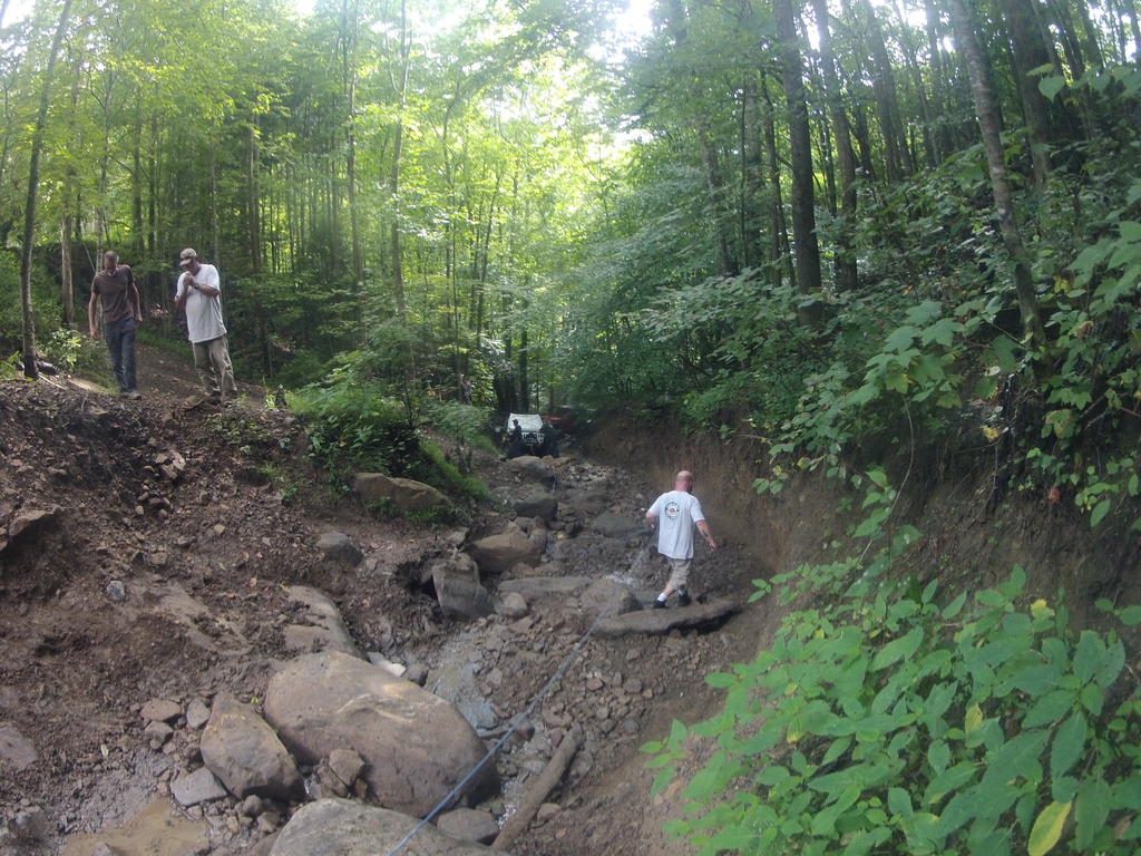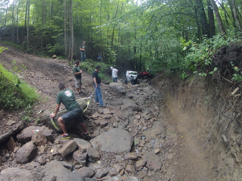 This is the only picture I have from a connector trail we took after the mountain ascent. Off camber, loose rock, and a giant rock at the top of this climb about took all of our lunch money. George drove Don's JK up the hill like a rock bouncer giving hell with the AC blasting. I heard him say his nipples were like diamonds wheeling the that thing...o_O