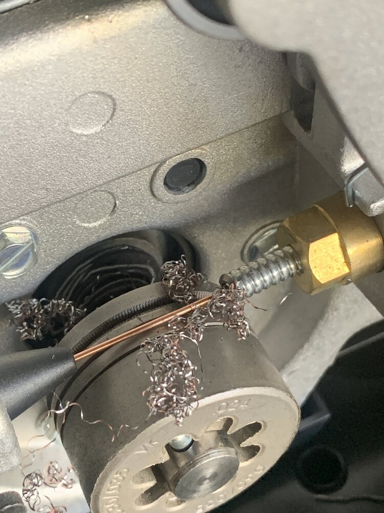 Opened the side door found a big ball of wire shaved off. Cleaned it out and finished without too much trouble.