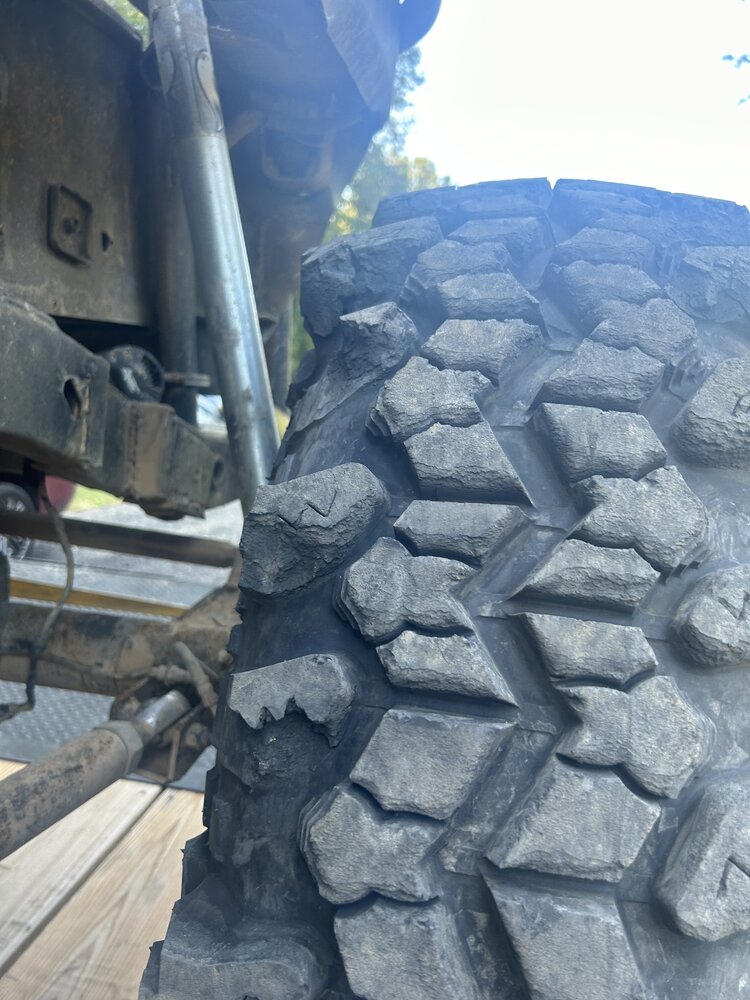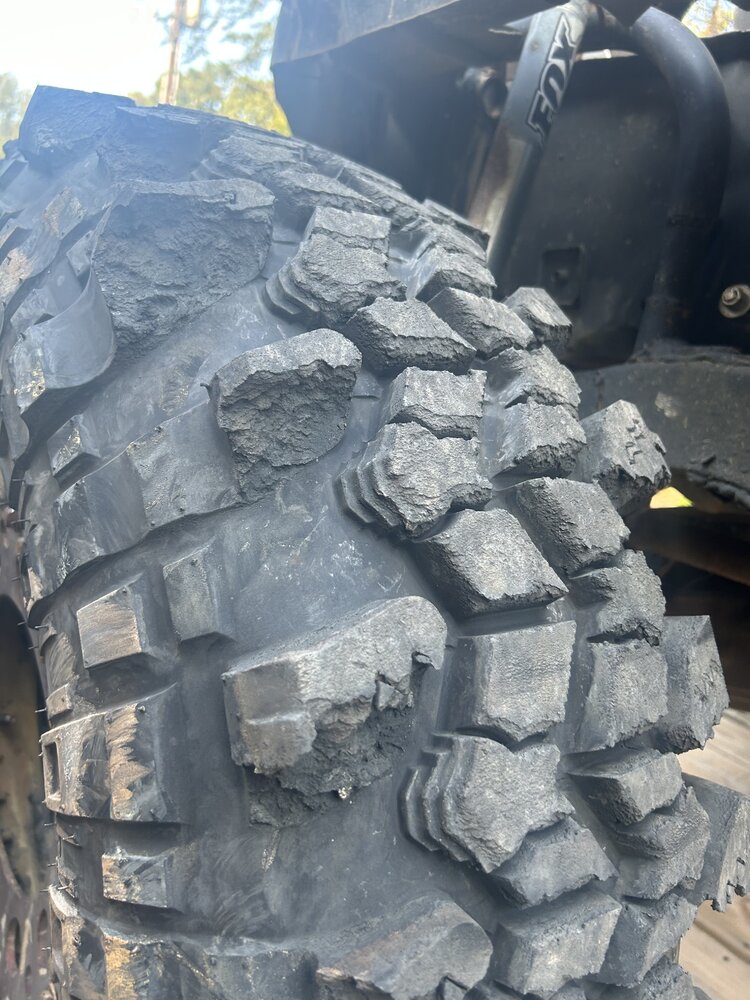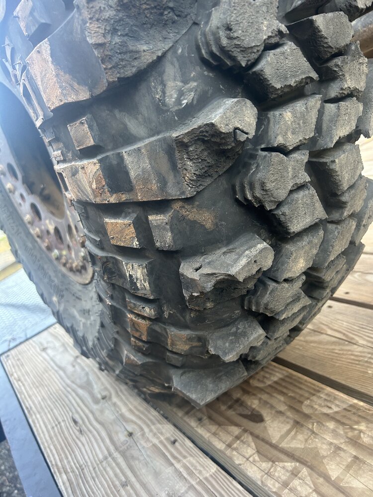 I posted a pic or 2 in another thread. I purchased a set of the sx2 stickies 40”. They arrived Friday 9/22. Literally stayed up all night mounting them to my bead locks. Didn’t move the jeep one but til this past Saturday 9/30 to load up and do a shake down run at ure of all places. From cotton place parking lot to the top of Daniel… the tires were already trashed. Will attach pics. After that I possibly broke an output in the case racing through the woods and a shifter mishap. So unhooked the front shaft. The fronts even though weren’t even pulling still continued to crumble. I have contacted interco several times yesterday with no response as well as email. I guess I’m getting nervous about loosing all that money. Luckily I did pay with a cc so I’m leaning towards disputing if I don’t hear back by the end of today. What are y’all’s thoughts. I mean the tires are literally trash, wouldn’t even wanna keep one for a spare. I’m sure they are gonna try to run me though the ringers about shipping and all if they do call me back. I’d be happy to ship them back but it will need to be their dime and I want my previous shipping back as well. Hopefully no one else will buy these junk tires