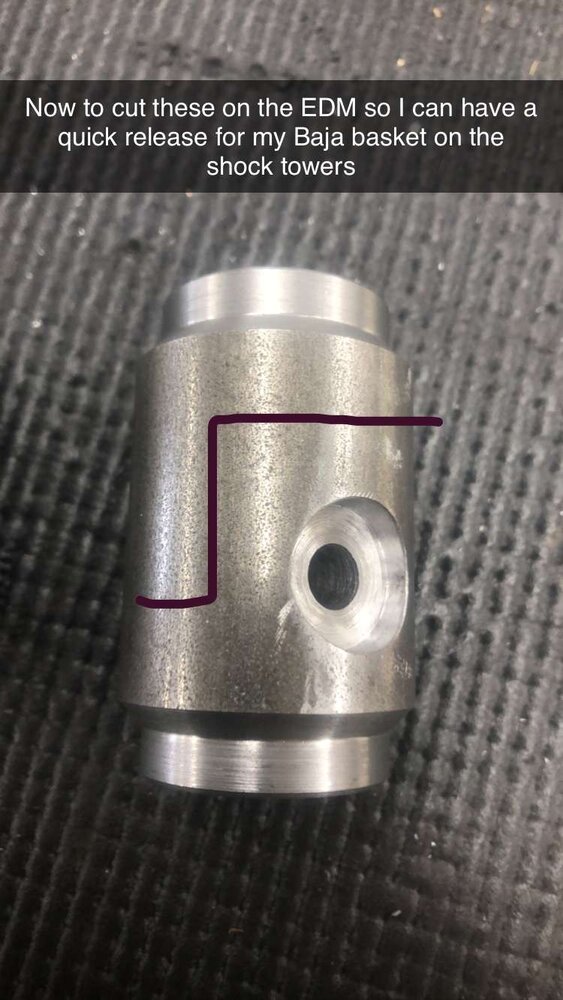 Yeah I didn’t get a chance do them yesterday because the shop does a lot of EDM for stuff. But I think I’ve got some time today I’ll be able to put them in and get the old guy to show me how. Haven’t decided if I want it threaded or ream it for a quick release pin.Assuming wire EDM? Nice!