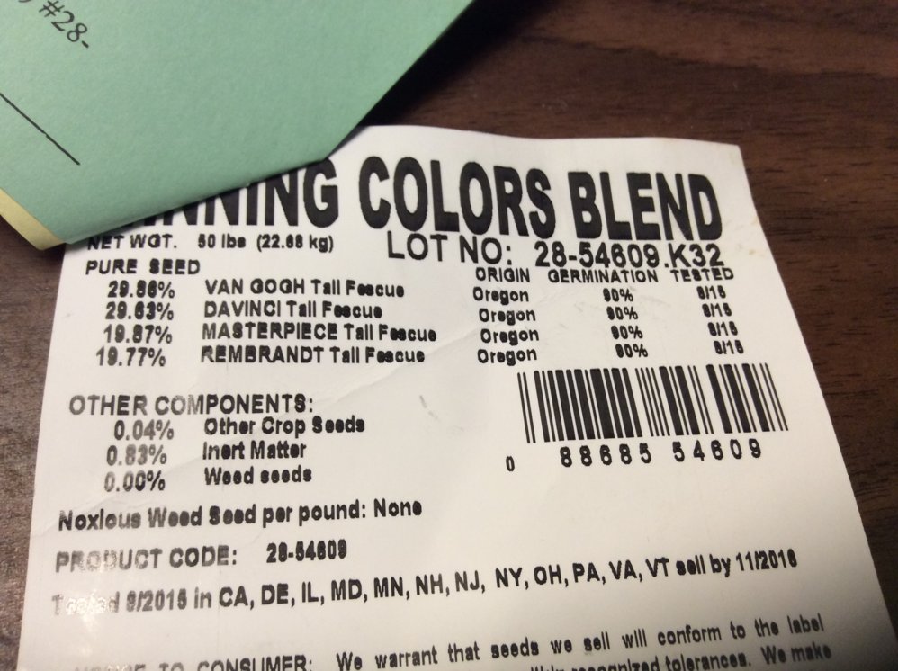 Also on your seed tag there is 3 categories for "other crop seeds", "Inert matter", "Weed seed", and "noxious weeds". There should be 0% on all but inert matter which is basically dust.
