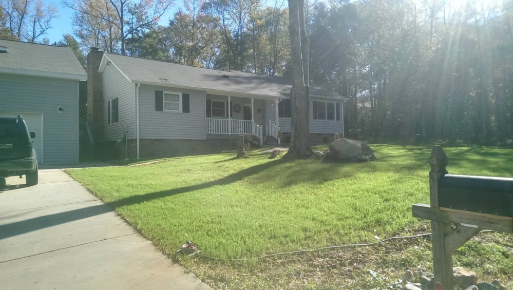 I'm not gong for a golf course lawn either. Just trying to get it to look nice and be thick enough for my kid and I to get out and play some ball in. Right now it's got a lot of bare spots and muddy when it rains. My biggest problem is that when we bought the house it had a lot of trees around it. I cut down 18 trees in the front and back. It had no grass except for a small patch of centipede in the front. When I removed the trees I also dug up all the roots and re-graded the yard. A lot of my topsoil got mixed in with the red clay. Last summer I tilled everything up and added in some topsoil and compost. Planted in the fall, and it came up nice and did well this spring also. Then this summer the heat and drought got it. I installed an irrigation system but I think it was already too late. So I'm pretty much starting over again.