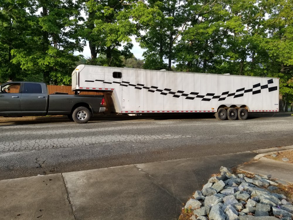Also, this is why I sold it...it's a damn good trailer though! What you can't see is the ramps are in the back of the truck and the bush hog is 3 feet over the back of the trailer!