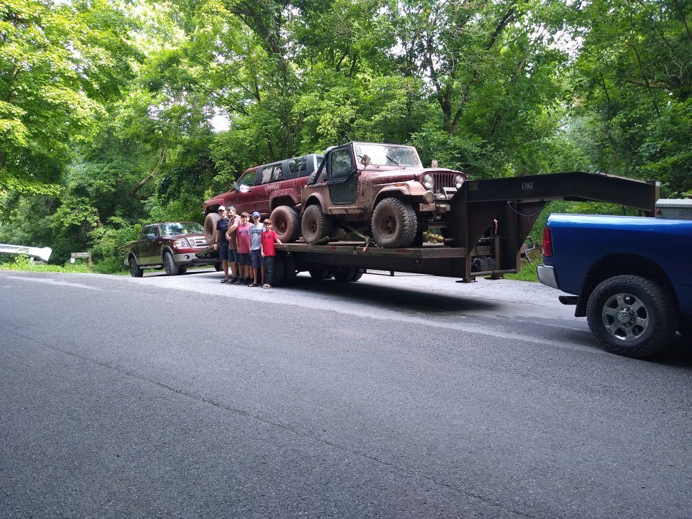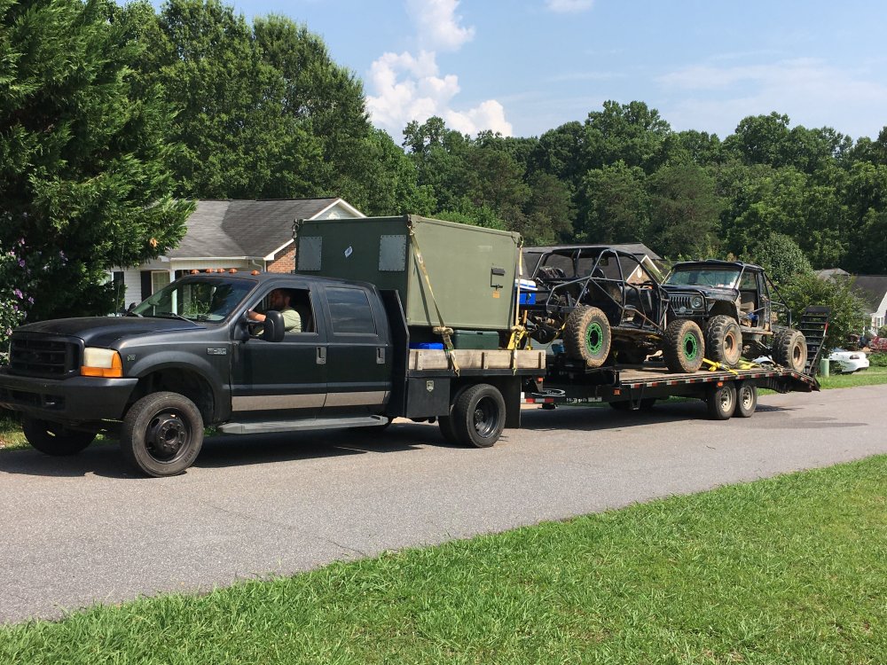 Hauled these two relics to Kairos this past weekend. Set the cruise at 75 and rolled past all the fords:driver:. That entrance to Kairos is a bit steep, was damp when we showed up. Had to moderate the go pedal to keep from spinning. Probably should have used the front axle too, but didn't want to shift under load, and I wasn't about to stop View attachment 323129