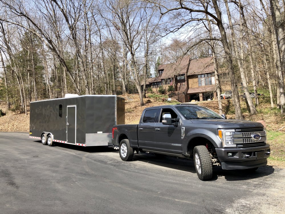Really need to reflash the computer for 525hp. 410hp just ain't cutting it, drops it back to 45-50 (when towing heavy) on normal hills in the Winston Salem area. Was grossing ~70k as pictured. It pulled it up my driveway just fine though, the 7.xx first gear ratio is a crawler!