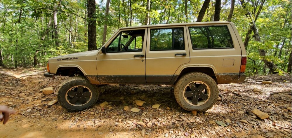NV 3350(?) swap, 4.3 Atlas, HP 30 long arms, 44 three link, 4.88s and ARBs, cromos, rusty coilovers, stretched 10”, 36” irocks w Stauns.