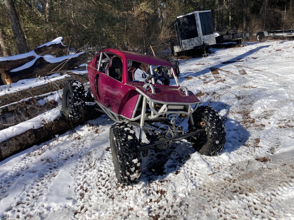 The chassis is all powder coated metallic silver. The only thing painted pink (candy pink, which is a bit of a process to do) are the body panels; I did it this way so changing colors should be reasonably easy.